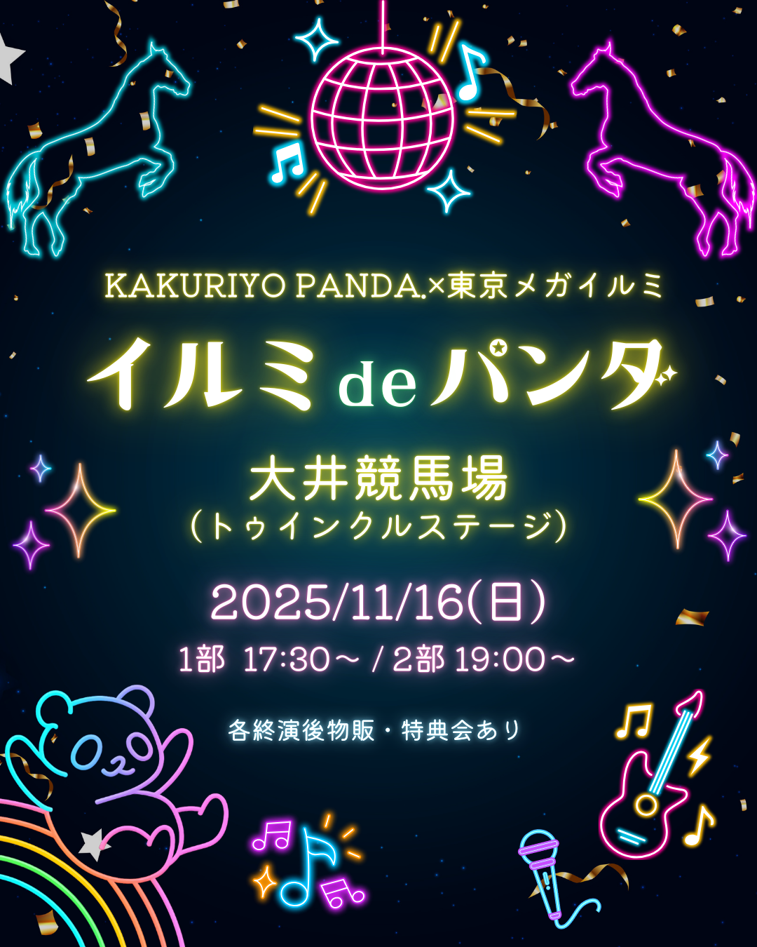 「東京メガイルミ2025-2026」大井競馬場 にて、KAKURIYO PANDA.のライブが開催決定!